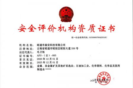2003年11月10日,昭通市鼎安科技有限公司成立,初始主要從事第三方安全工程技術(shù)服務,經(jīng)多年運營,發(fā)展為多專業(yè)綜合科技平臺,為社會提供多種專業(yè)技術(shù)服務工作。 現(xiàn)公司注冊資金為1200萬元,公司法定代表人:毛衛(wèi)旭。公司主要業(yè)務:安全評價、安全標準化評審、安全工程技術(shù)服務;環(huán)境監(jiān)測、職業(yè)衛(wèi)生檢測、檢驗;法律訴訟及非訴訟服務;司法鑒定、固定資產(chǎn)投資項目節(jié)能服務;工程咨詢;工程測量測繪;安全教育培訓等。是安全生產(chǎn)服務、安全教育培訓機構(gòu),也是環(huán)境監(jiān)測和職業(yè)衛(wèi)生服務機構(gòu),同時也是綜合的檢測檢驗、綜合科技平臺服務機構(gòu)。多年來為公、檢、法、司、軍、警、海關(guān)、仲裁、安監(jiān)、工礦商貿(mào)企業(yè)、社會團體及個人提供多專業(yè)技術(shù)服務。